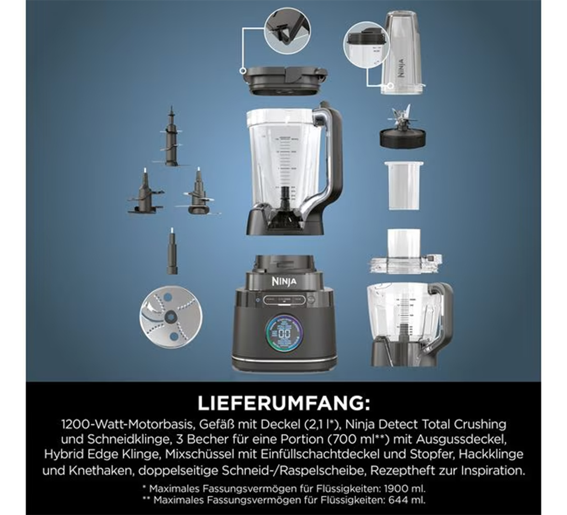 • 3-in-1-Mixerfunktion für Smoothies, Teige und mehr.
