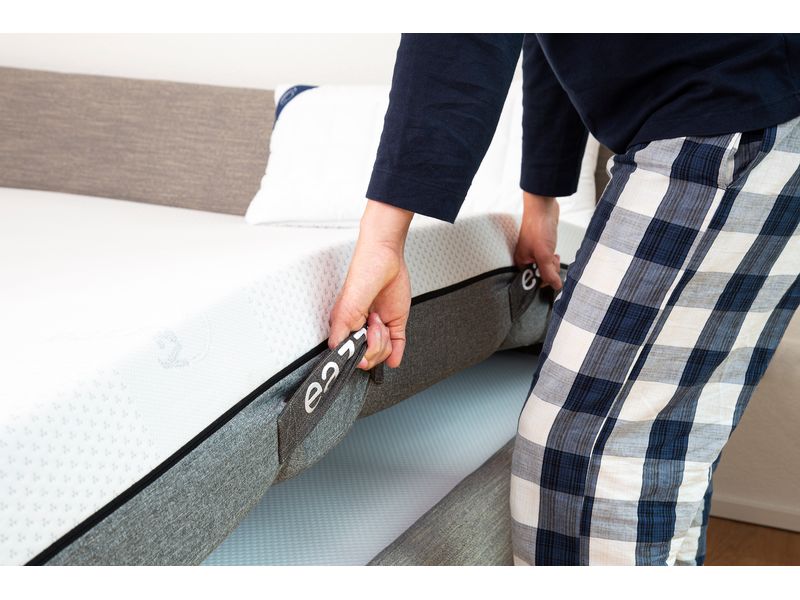 Die Eazzzy Matratze passt sich deinem Körper an, wie eine zweite Haut. Der Gel-Memory-Schaum reagiert auf deine Wärme, während die punktelastische Zoneneinteilung jede Bewegung unterstützt. Mit 10 % erhöhter Liegefläche gleitest du leicht ins Bett und steigst ohne Mühe wieder aus, für ein luxuriöses Boxspring-Gefühl zu Hause.