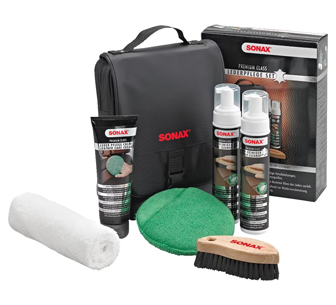 Leder steht für Eleganz und Komfort mit dem SONAX PremiumClass Lederpflege-Set bleibt es genau so. Das Komplettset reinigt gründlich und schonend selbst hartnäckige Verschmutzungen, ohne das Material anzugreifen oder auszutrocknen. Ideal für alle Glattleder, auch perforierte Oberflächen und Sitze mit Sitzheizung.