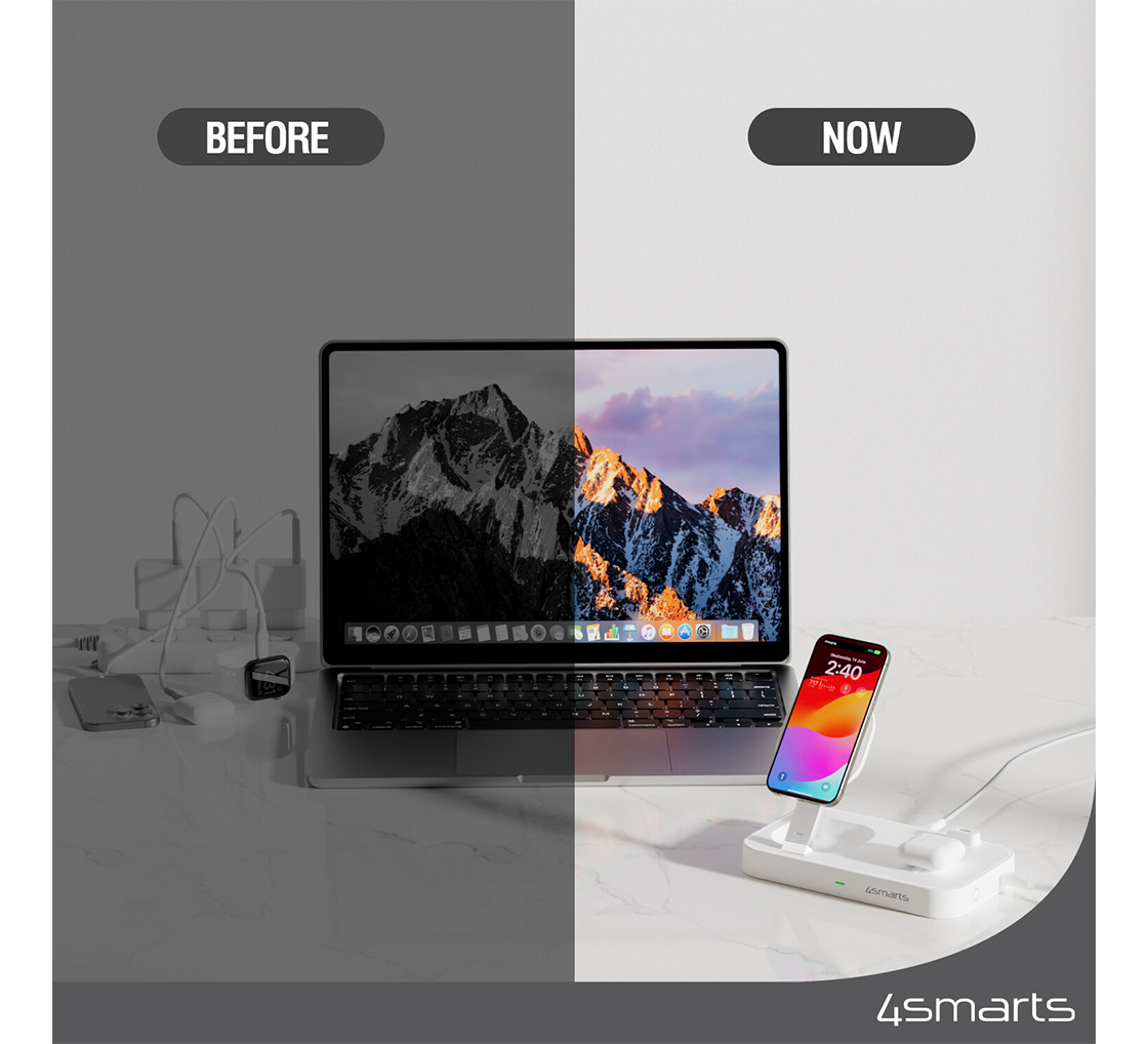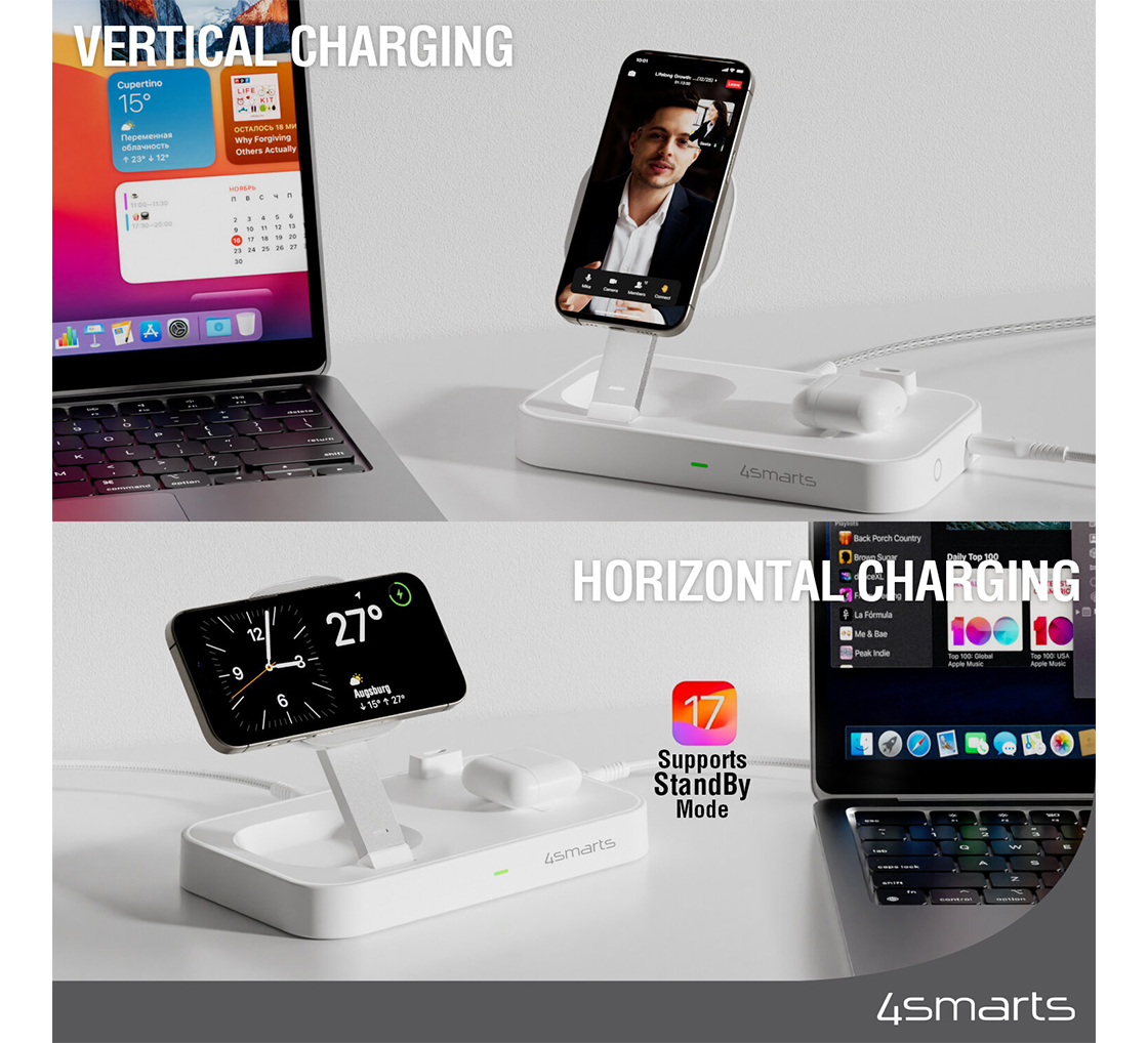 Morgens im Hochformat für den schnellen Blick auf Nachrichten oder abends im Querformat für die StandBy Funktion. Du entscheidest, wie dein Smartphone steht. Auch Android Geräte kannst du mit dem UltiMag Ring einbinden. Alles läuft über ein einziges USB C Kabel mit bis zu 25 Watt Gesamtleistung.