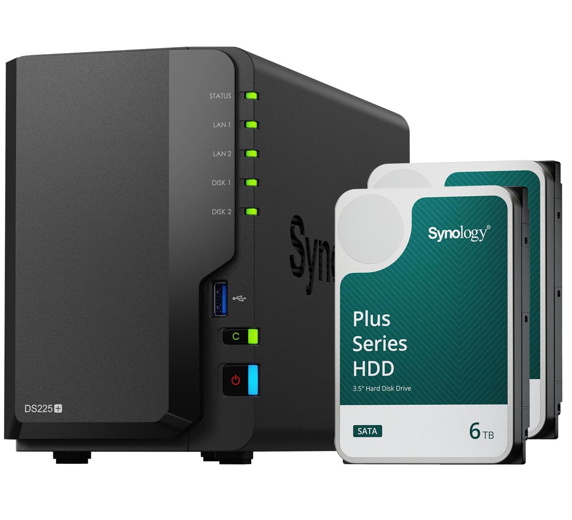 2-bay-NAS mit 2x 6 TB HDD Synology DiskStation DS225+