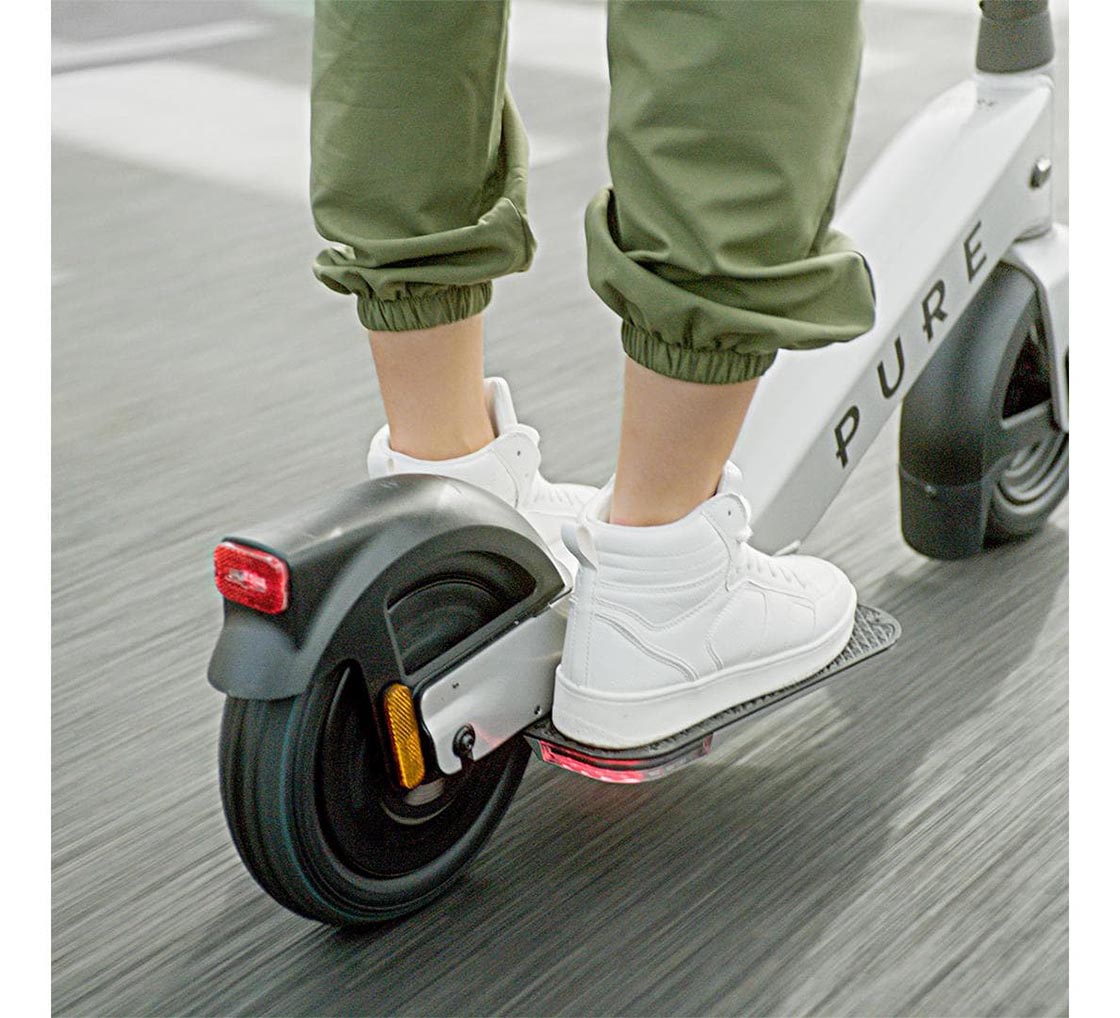 Erlebe urbane Mobilität auf neuem Niveau mit dem Pure Advance E-Scooter. Dank seines innovativen Klappsystems lässt er sich kompakt verstauen und leicht transportieren.