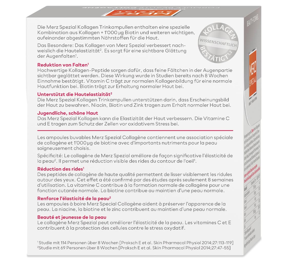 - Kollagen verbessert nachweislich Hautelastizität und Augenfalten