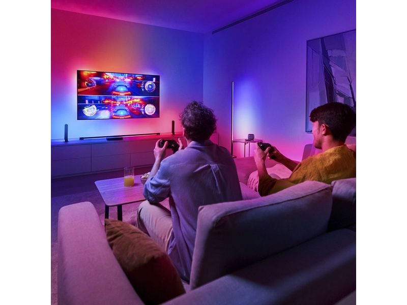 Verbinde die Lichter, schliesse die Box an und starte das Erlebnis. Dein Wohnzimmer wird zum Kino, zur Spielhalle, zur Bühne. Tauchen ein, statt nur zuzuschauen.