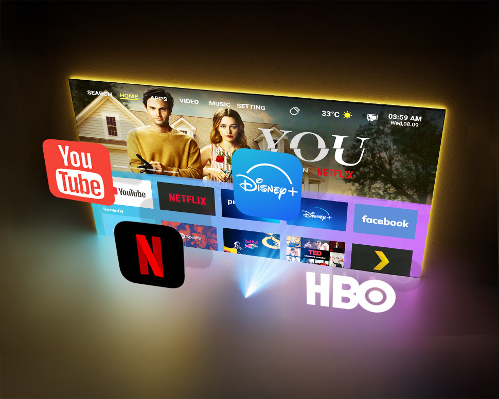 Pack den Alltag beiseite und mach dich bereit für grosses Entertainment überall: Der FTM Projektor Pro ist kompakt, dass er in jeden Rucksack passt und verwandelt jede ebene Wand in deine persönliche Leinwand.