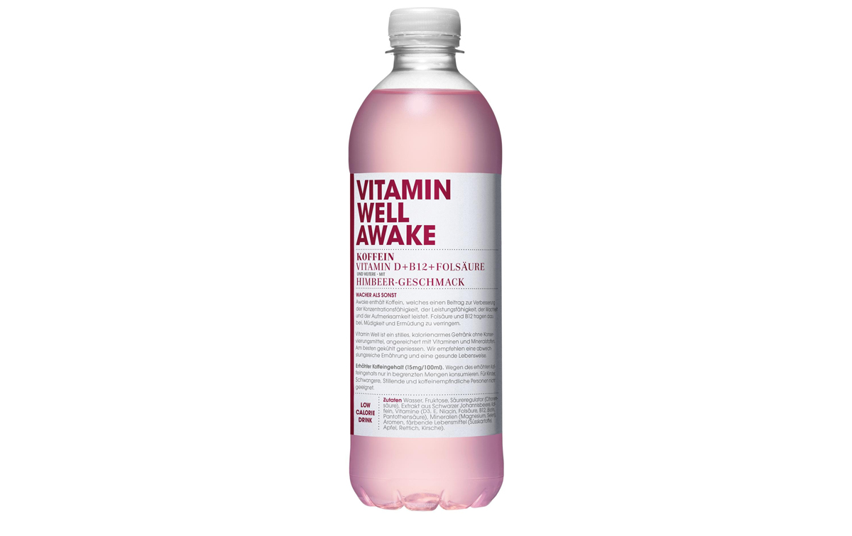 Erfrische dich mit Vitamin Well! Diese kalorienarmen Getränke ohne Kohlensäure kommen in vier spannenden Geschmacksrichtungen: Reload (Zitrone/Limette), Awake (Himbeere), Antioxidant (Pfirsich) und Zero Raspberry (Himbeer/Zitrone).