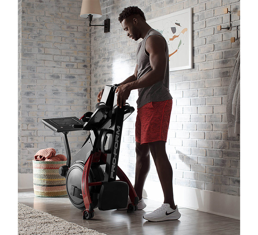 Durch das Klappsystem kombiniert mit den Transporträdern an der Vorderseite, lässt sich das Rudergerät problemlos leicht durch den Raum bewegen.