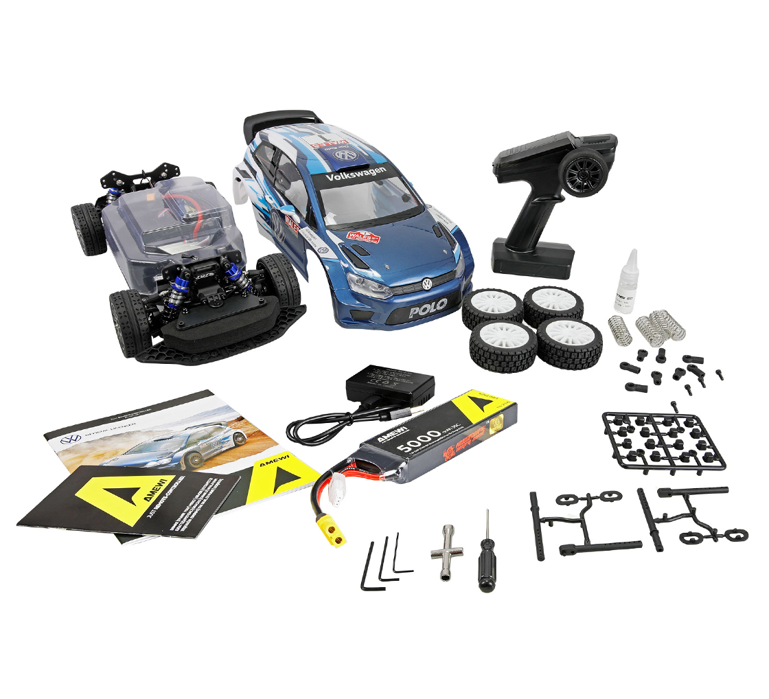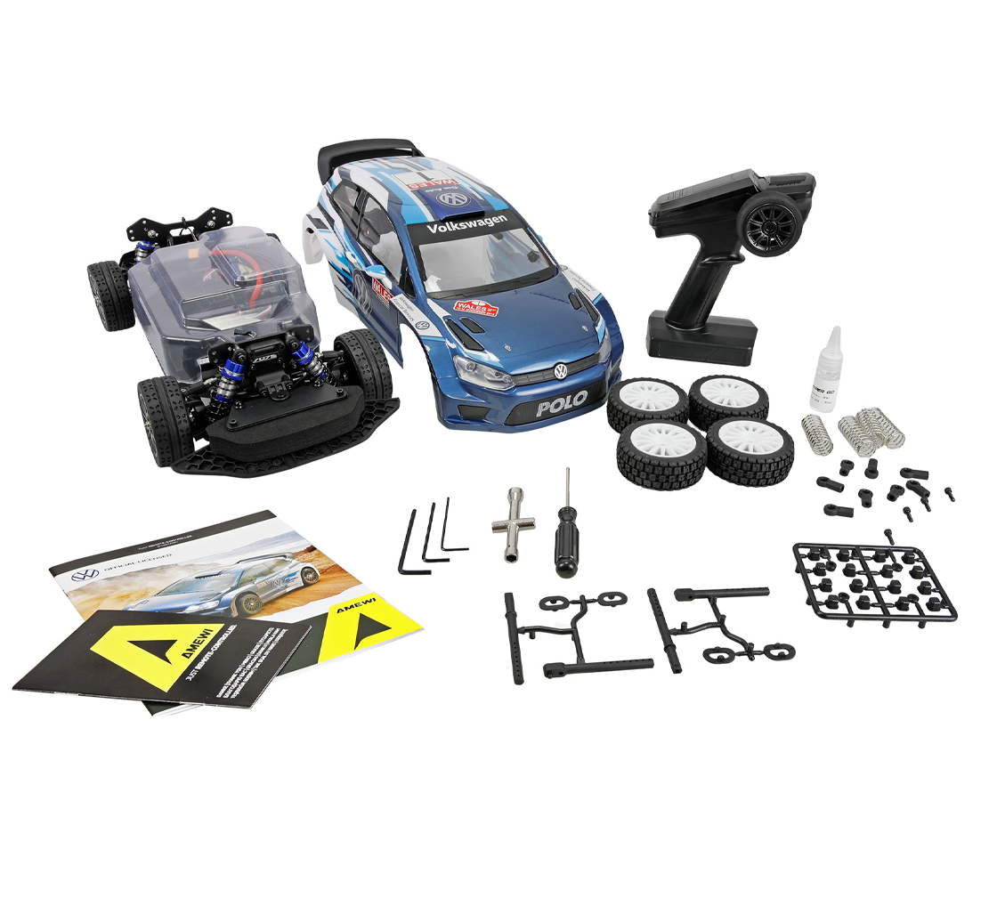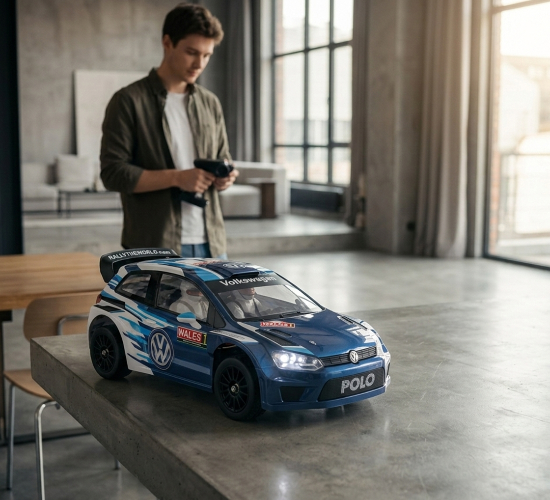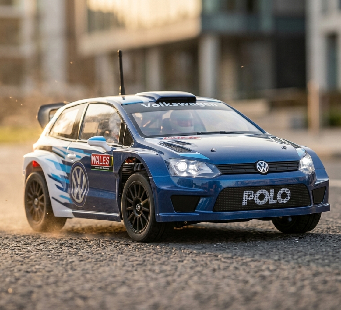 Zwei Reifensätze für Strasse und Gelände, sowie die lizenzierte VW Polo R WRC Karosserie machen das Modell zu einem echten Hingucker. Ideal für Einsteiger und erfahrene Fahrer, die Geschwindigkeit, Technik und Style lieben.