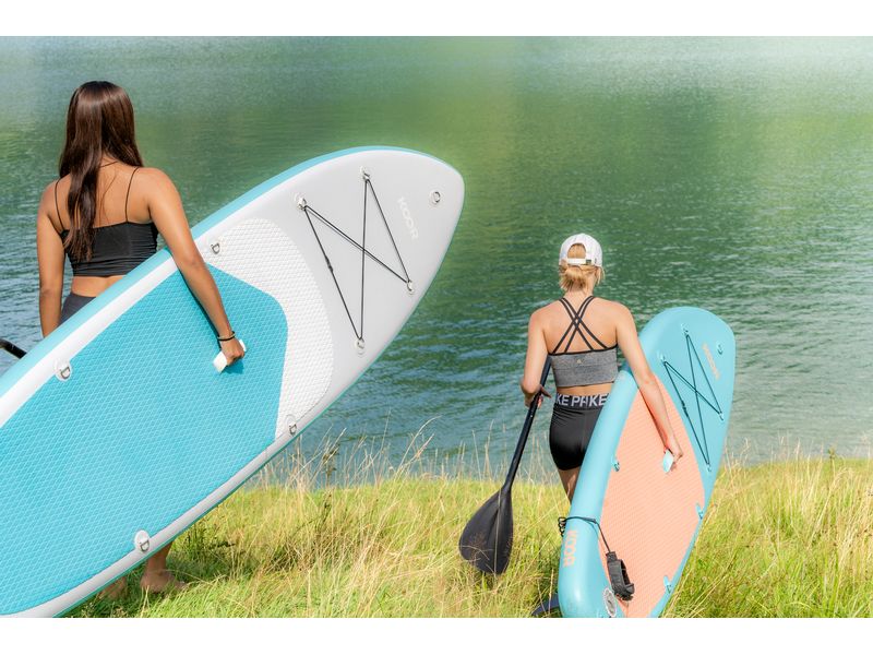 Stell dir vor: Die Sonne geht über dem See auf, das Wasser ist spiegelglatt, und du gleitest ganz allein über die Oberfläche, nur du, dein Board und die Natur. Oder lädst du lieber Freunde ein für einen lustigen Paddelausflug mit Picknick auf dem Wasser? Dieses vielseitige SUP-Board macht beides möglich.